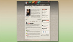 In terms of creative strategy, we wanted 1Love’s style to be modern while maintaining Marley’s Rastafarian heritage, so we leveraged the Jamaican colors of green, yellow and red as accents to the layout. By crafting paper textures, as well as fabric-like textures—such as burlap—with stitched details, we were able to convey an organic, hand-made feel to the site’s foundation. Typography and images were the last creative details needed to establish the brand’s overall style. Once the look and tone were perfected, we moved onto the 1Love logo, which BLITZ designed exclusively for Marley Ventures to use on all 1Love products, documents and any marketing material, including the Web site. All of these creative components were compiled into a single, sacred guide—the 1Love Brand Bible—to ensure a consistent look and feel across all future 1Love developments.
