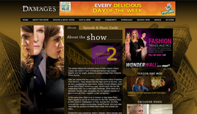 For Season 2 of Damages, FX wanted to move away from creating a Flash-based microsite and focus on streamlining their shows’ online presence with a template that could fully take advantage of their now-successful ad network. Like other FX sites, The Damages show experience features bios of the cast and crew, offered free downloads and gave short replays of past episodes, only now advertising opportunities have become more prominent—which has helped them become more successful throughout the various programs. This has not only helped FX’ ability to utilize their microsites to generate ad revenue, but also gives advertisers more robust and effective opportunities.