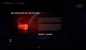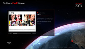 To celebrate 10 years of Flash, Adobe turned to BLITZ to create a state-of-the-Flash-art experience that showcased its history. Working closely with the Adobe team, we selected key projects and developers that had been honored by the Flash community over the years, including Jonathan Gay, the founding father of Flash. In creating the site, we knew that it had to be a homage to the application itself the experience had to be awesome and take advantage of the latest Flash developments. Using a 3D Earth interface as our core navigation element, the audience was able to travel through the Flash time line by spinning the simulated planet. Once reaching specific timeline destinations, users were able to immerse themselves into video case studies and interviews that showed how Flash was an integral application in the work and our industry. The experience was praised by Adobe and the Flash community, and was a great peek into the direction Flash was headed and the innovations we all looked forward to.