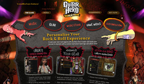The biggest challenge we faced when creating the branded experience was to truly differentiate it from Rock Band and make it known throughout the world that Guitar Hero was now a multi-instrument game. To appeal to a worldwide audience, the site initially launched in five languages and had two more added in at a later date. Upon its immediate release, it was easy to see that GH fans throughout the world were ready for the souped-up version of the rocking classic as it still outsells the competition.