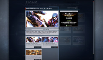 Our deadline was set in stone: September 13, 2010, the day before Microsoft released its most anticipated game of the decade, Halo: Reach. That gave us five months to conceptualize, create and launch the Halo Waypoint website, the most captivating and interactive Halo experience outside of playing the actual game. Our overall Waypoint strategy was the first of its kind for Halo. We designed each screen (users’ Microsoft Xbox® consoles, the web and mobile phones) to represent different military role in the Haloverse. For example, the website was suited to the engineer offering loads of details on every Halo-related topic. Here, users can find smooth streaming videos, event info, motion comics, interviews, podcasts, forums … and literally anything else related to this popular gaming franchise, including large amounts of “intel” content that had previously existed only on the console.