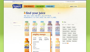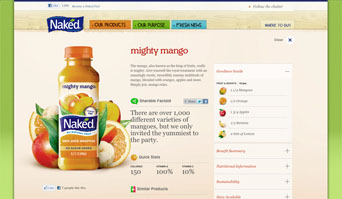 Catálogo de productos de Naked que está creciendo fuertemente, están invirtiendo más en los esfuerzos de sostenibilidad, las nuevas líneas de productos en curso y que ahora tenía una comunidad social creciente. Con toda esta acción se propuso renovar su hub, NakedJuice.com, para asegurar que se están cumpliendo todas las áreas de promesa de marca. Y con la creciente popularidad en la telefonía móvil y las tabletas en el mercado, que era igualmente importante para ofrecer a los usuarios de estos dispositivos una experiencia igualmente prometedora.