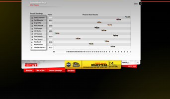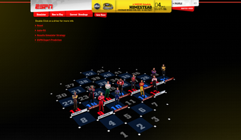 In continuing to add to our Papervision portfolio, BLITZ teamed up with Weiden + Kennedy to create an experience for ESPN and NASCAR that built awareness around the Chase for the NASCAR Sprint Cup. With this, NASCAR fans were able to predict race outcomes and season standings by dragging and dropping racers onto a standings grid. Depending on where you placed the racers, you’d either receive praise and a thanks, or a not so thankful comment from the drivers. Fans loved it, and came back throughout the entire race event to keep track of the scoreboard and stats.