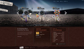 Every idea starts with a seed. And once planted, that idea can grow and flourish, so long as it’s properly nurtured. This is the AYV philosophy as well as the overall foundation behind Plant Your Ideas. Within the Flash experience, users are invited to create a unique flower that conveys their personal story and artistic journey by using preloaded images, personal photographs (through Facebook® connect) and a written narrative. In addition to the visual tools, we also incorporated a music player that allows users to mash up existing Black Eyed Peas tracks and add to their flower. Once finished, a user’s flower is uploaded to the gallery for others to view and rate. The application also gives users the ability to share within their respective social networks.