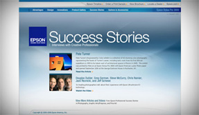 With the Epson Stylus Pro microsite, our main task was to demonstrate the new technological advances in easily digestible formats — turn what may be perceived as “geek speak” into colloquial language. As techie storytellers, we were able to translate their content into highly visual demos that gave users a deeper tour into the new printer and its history. Visitors were able to view the new features and enhancements of the 3800 through the juxtaposition of photography and text — visual testimonials vs. written ones.