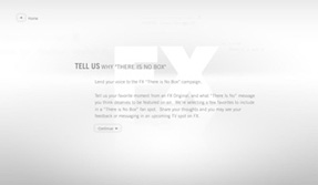We created a 3D, reflective space that supported the candid, unconstrained feel of the box-less theme. Viewers could click on the floating images of FX’s notorious dramas and comedies to launch video previews, submit their favorite FX moments in hopes of it getting airplay during an FX show and could also sign up for an exclusive chance to win an autographed FX Brand book signed by FX stars. Simple video vignettes with intelligent copy positioned the FX brand unlike any other network that shared their prime-time spot. Additionally, the site allowed visitors to share their FX passion and tell the world why there is “no box.”