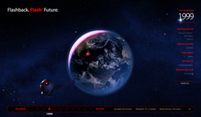 To celebrate 10 years of Flash, Adobe turned to BLITZ to create a state-of-the-Flash-art experience that showcased its history. Working closely with the Adobe team, we selected key projects and developers that had been honored by the Flash community over the years, including Jonathan Gay, the founding father of Flash. In creating the site, we knew that it had to be a homage to the application itself the experience had to be awesome and take advantage of the latest Flash developments. Using a 3D Earth interface as our core navigation element, the audience was able to travel through the Flash time line by spinning the simulated planet. Once reaching specific timeline destinations, users were able to immerse themselves into video case studies and interviews that showed how Flash was an integral application in the work and our industry. The experience was praised by Adobe and the Flash community, and was a great peek into the direction Flash was headed and the innovations we all looked forward to.