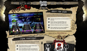 With the upcoming release of Guitar Hero Metallica, the GH team and the metal band needed a site that seriously melted some faces. To accomplish this, we worked directly with the band (well, they were on tour, so via email and FTP) to create the overall look and feel of the site, which included actual hand script from James Hetfield himself. Working through proximity challenges, we were able to rock out the full experience, localized in 10 languages, to coincide with the offline launch of the game and broadcast spots.