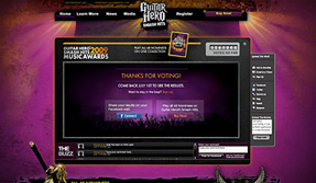 This launch came in two phases. Phase one was somewhat of a teaser page that included a module that urged users to vote on the setlists that would be revealed. Through this, we captured important gamer data that could later be used during the launch of phase two. With the launch of the second phase, we worked with Activision’s traditional agency, Crispin Porter + Bogusky, to bring a social vision to life: The 2009 Guitar Hero Smash Hits Music Awards. This was a fun element that allowed GH fans to vote on their favorites songs, riffs, shreds, drumfills and bass licks. The site integrated with Facebook and allowed users to vote, comment and post to their status updates, thus increasing awareness through the popular social network.