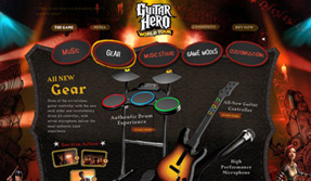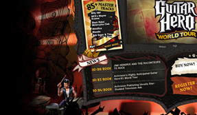 The biggest challenge we faced when creating the branded experience was to truly differentiate it from Rock Band and make it known throughout the world that Guitar Hero was now a multi-instrument game. To appeal to a worldwide audience, the site initially launched in five languages and had two more added in at a later date. Upon its immediate release, it was easy to see that GH fans throughout the world were ready for the souped-up version of the rocking classic as it still outsells the competition.