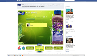 Naked Juice has a thriving community on Facebook, and they have a new, environmentally conscious bottling initiative called the reNEWabottle—it’s a bottle made from 100% recyclable products, plus it’s 100% recycled. As a means of spreading the message we recommended and created a Facebook application that urges FB users to pass bottles to friends within their own micro-communities.
