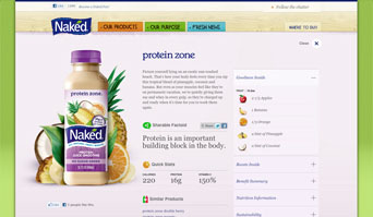Pero más que cambiar la funcionalidad del sitio, hemos puesto un gran énfasis en el contenido. Naked siempre se ha basado en la sostenibilidad y la responsabilidad corporativa, pero con el paso de los años ellos han aumentado sus inversiones a través del outsourcing, la transición de todas las botellas 100% reciclados y reciclables, construyen una planta embotelladora LEED Certified. Más allá de contar la historia de jugo y su historia, que forma de nuevo su contenido y slogan de marca para asegurar su mensaje de responsabilidad corporativa un gran reto, sólo trabajamos en que no sonara tan corporativa.