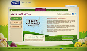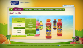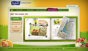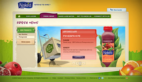 Being a grassroots company, Naked Juice knew that their acquisition by PepsiCo may turn off some of their loyal fans. To help them maintain a mom and pop feel, we created a fun, engaging site chock full of personality. Throughout it, users can get the skinny on Naked Juice’s commitment to healthy living, a healthier environment and good, all-natural juice.