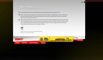 In continuing to add to our Papervision portfolio, BLITZ teamed up with Weiden + Kennedy to create an experience for ESPN and NASCAR that built awareness around the Chase for the NASCAR Sprint Cup. With this, NASCAR fans were able to predict race outcomes and season standings by dragging and dropping racers onto a standings grid. Depending on where you placed the racers, you’d either receive praise and a thanks, or a not so thankful comment from the drivers. Fans loved it, and came back throughout the entire race event to keep track of the scoreboard and stats.