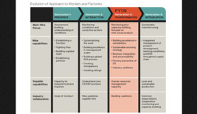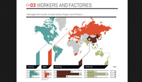 A key feature of the site is its interactive map that shows Nike Brand contract factories throughout the world. Users can select any of the 46 countries to learn about Nike employment information, including factory demographics, total sales, and the manufacturing profile.