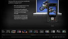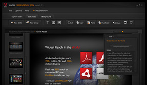 Adobe needed a robust presentation tool to provide their business and sales teams with media-rich slide libraries. To answer the call, we developed an AIR desktop application that included robust slide builder functionality and automatic updates ensuring their teams were always up to date with the latest content. The application enabled their business development teams to quickly customize presentations for the many different products they offer with stronger visual impact something more in line with the Adobe brand.
