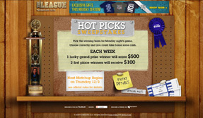Since The League is a new series, and one that targets a completely different demographic than any other FX show, BLITZ helped define the brand and tone for the digital space. The microsite enables fans to access sneak peaks and browse video clips of deleted scenes or other filming specials, read production blogs, and get a behind-the-scenes glimpse at The League world; however, by augmenting the site with FoxSports.com, tune in, repeat visitors and overall traffic can be further enhanced.